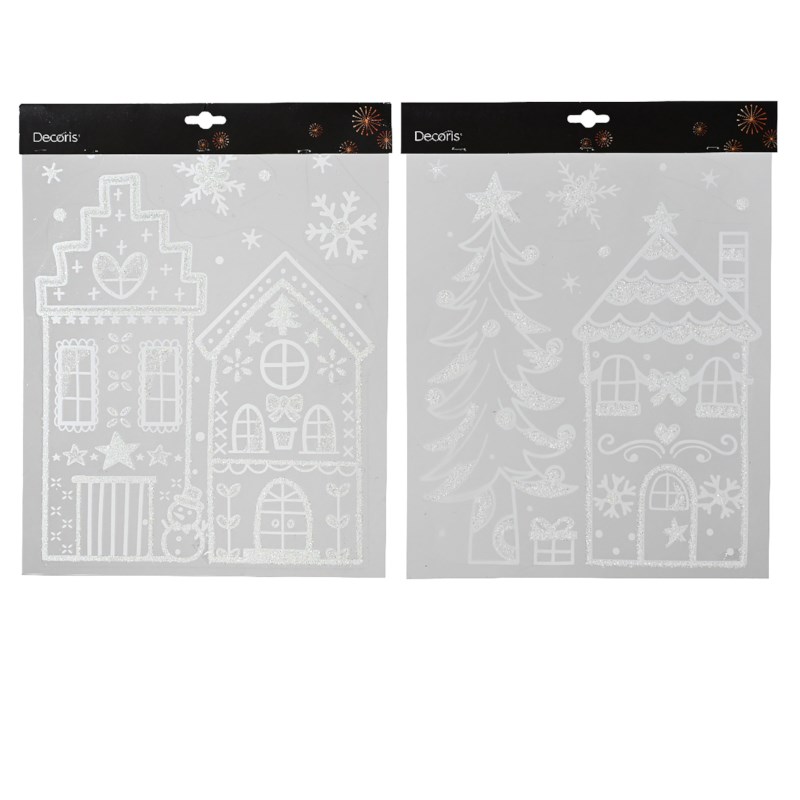 Grote sticker in het thema kerst, winterse huisjes, die op het raam geplakt kan worden. Let wel op, dit artikel wordt assorti geleverd, er zijn 2 verschillende afbeeldingen.