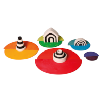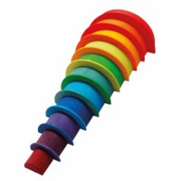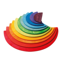 De creativiteit kent geen grenzen met deze halve cirkels in mooie heldere regenboogkleuren. Perfect te combineren met de grote 12-delige regenboog van Grimms. Grimm's is educatief en rijk gekleurd speelgoed van hout. Het wordt gemaakt van Europees hout uit duurzaam beheerde bossen. De verf is op waterbasis en voldoet aan de Europese veiligheidsnorm voor speelgoed EN-71.
