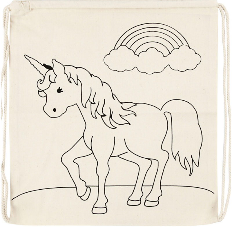 Deze rugtas is bedrukt met een unicorn thema, die je kunt inkleuren met bijvoorbeeld textielverf of textielstiften. Voor een mooi blijvend resultaat de tas naderhand fixeren met een strijkijzer. Een leuke activiteit met direct resultaat.