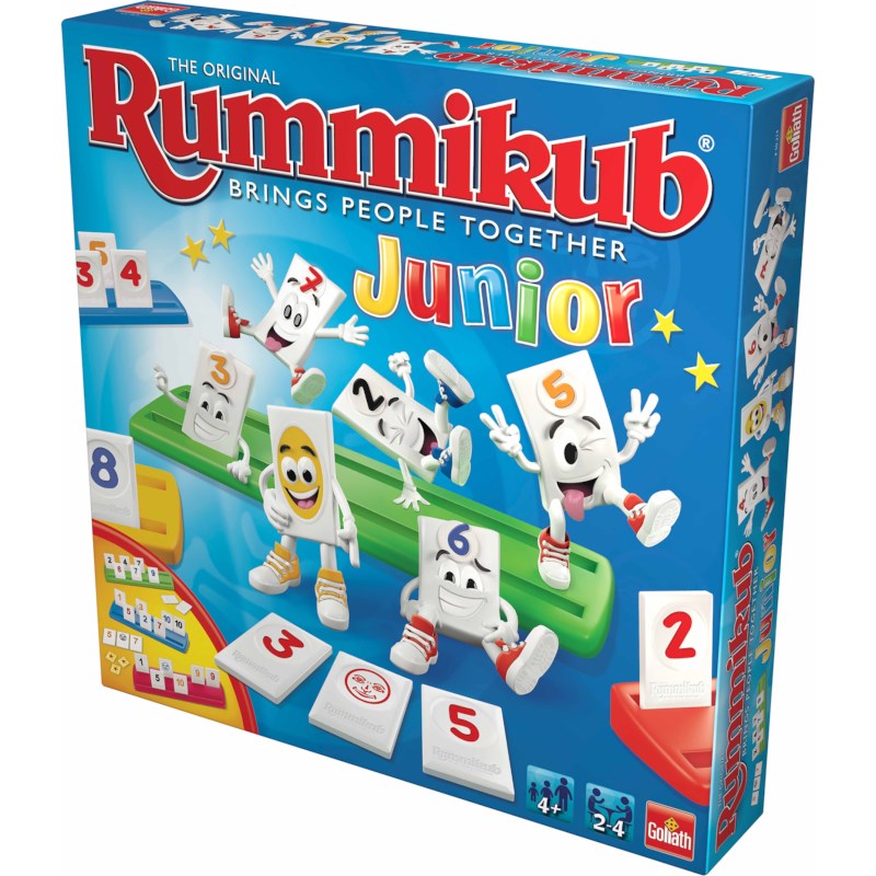 Rummikub maar dan voor de kleintjes! Deze versie maakt het voor kinderen extra aantrekkelijk om op een speelse wijze met cijfers en cijferreeksen bezig te zijn. Een leuke en leerzame ervaring! Maak de mooiste cijferreeksen met de gekleurde cijfers op je plankje. Wie legt de besste combinaties? Ben jij degene die het eerst het plankje leeg heeft? Een spel dat inzicht, durf en tactiek met elkaar combineert.