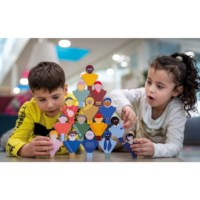 Samen sterk vraagt om een vaste hand en gecontroleerde bewegingen. Kinderen stapelen de stapelfiguren en zorgen voor een stabiele constructie. de figuren representeren de diversiteit in onze samenleving. Door geconcentreerd te stapelen en balans te zoeken, ontwikkelen kinderen controle over hun hand- en vingerbewegingen. Dit versterkt de fijne motoriek en helpt bij het reguleren van kracht en stabiliteit.