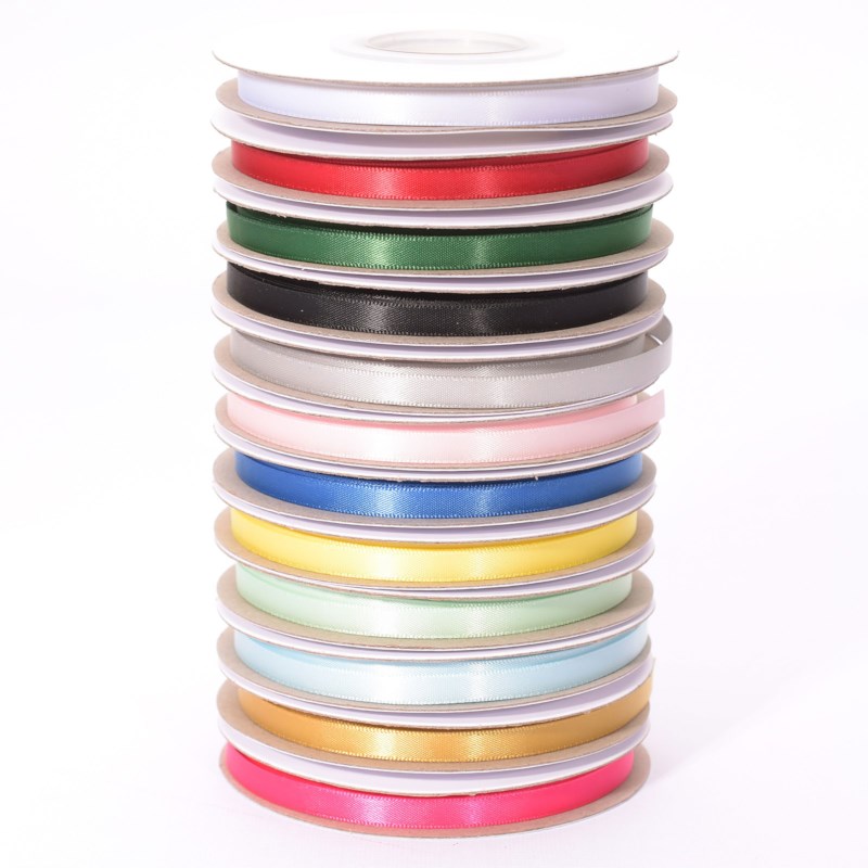 Een mooi satijnen basislint voor het versieren van knutselwerken, of voor het maken van strikken op cadeautjes. Het lint is zacht en soepel en heeft een tweezijdig glanzend oppervlak met gestikte rand. Deze set bevat kleuren als rood, groen, zwart en oranje die je kunt gebruiken voor kerstversieringen, vaderdagkaarten of Halloween decoraties tot zachtere pasteltinten voor paasdecoraties, huwelijksuitnodigingen of kraamcadeautjes.