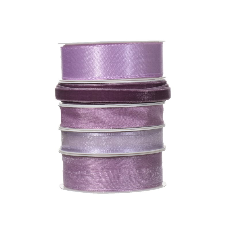 Satijnen lint | Assortiment lila | | 6 meter | 5 rol