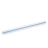Een stevige liniaal van 30 cm met schaalverdeling. Uit hoogwaardige kunststof. Schaalverdeling 1:20, 1:25, 1:50, 1:75, 1:100, 1:125