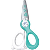 Een kleine peuterschaar waar jonge kinderen veilig en makkelijk kunnen leren knippen. De schaar heeft afgeronde punten en een blad waarmee alleen papier geknipt kan worden.