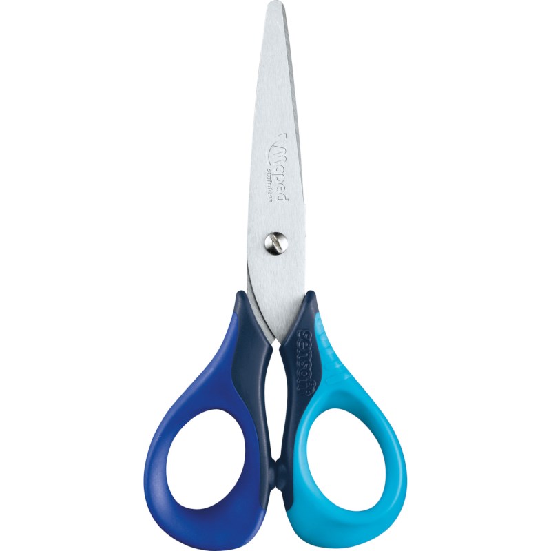 Schaar Maped Sensoft 3D. Een schaar met zachte en soepele ringen die het knippen prettiger maken.