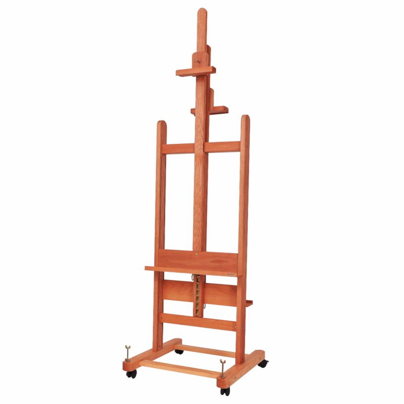 Een stevige atelierezel welke aan beide kanten te gebruiken is. Dit neemt minder vloeroppervlak en opslagruimte in beslag dan bij twee aparte schildersezels. De ezel heeft een solide onderstel waardoor het niet hinderlijk is om met twee personen tegelijk te werken.
