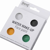 De Grimas schmink MANIA set bevat de kleuren wit (001), zwart (101), geel (201) en groen (407).