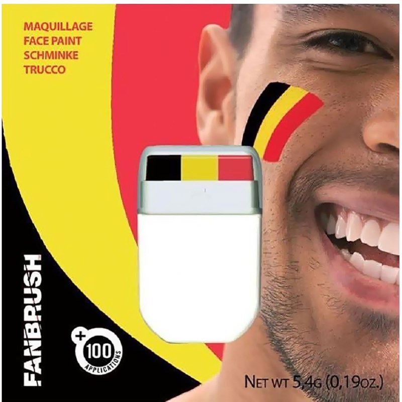 Schmink, in de kleuren van de Belgische vlag, in een stiftvorm zodat je in 1 keer de drie kleuren, zwart, geel, rood kunt schminken.