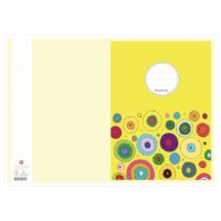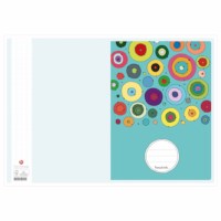 A4 Formaat schrift met vrolijk gekleurde kaft en etiket op de voorkant.