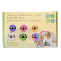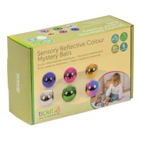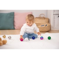 Een set van 6 spiegelballen die elk hun eigen eigenschappen hebben. De ballen stimuleren de zintuigen op verschillende manieren. Kinderen kunnen hun eigen reflectie zien in de ballen. Het gewicht in de ballen is ongelijk verdeeld. Dus als je de bal rolt, dan zal elke bal verschillend rollen.