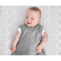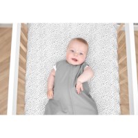 Deze grijze zomerslaapzak van 110 cm zonder mouwen van zacht 100 % katoen is ideaal voor de zomer. De stof is fijn ademend en zorgt ervoor dat de baby op temperatuur blijft, maar het zomers niet te warm krijgt.