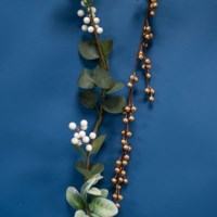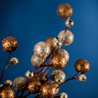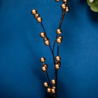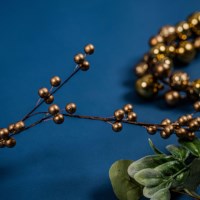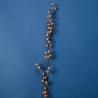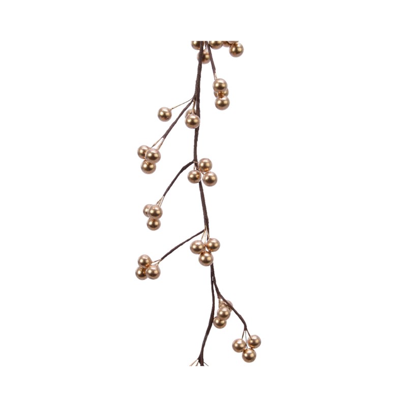 Een slinger met besjes goudkleurig gespoten, de slinger creëert een kerstsfeer.
