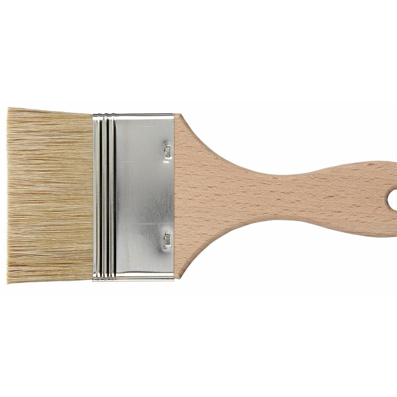 Voor het egaal aanbrengen van vernis. Blankhouten steel, varkenshaar.