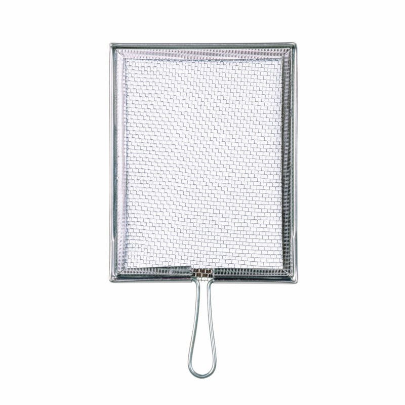 Spatraampje van metaal. Het gaas heeft een extra vertind laagje.