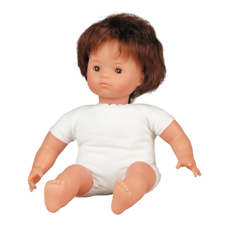 Een pop met kort haar en een zacht lijfje. Kleed de pop aan, stop hem in bed en maak hem weer wakker. Eindeloze mogelijkheden. De pop is ongeveer 40 cm lang.