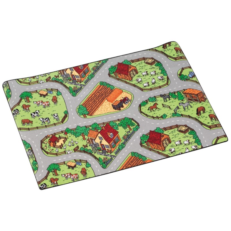 Op het platteland valt altijd wat te zien. Koeien, schapen of paarden. Ontdek het allemaal met de Verkeersparcours - boerderij speelmat. Het pad slingert door het landschap, waarbij verschillende agrarische elementen zichtbaar zijn. Kinderen ontdekken hoe het leven op de boerderij eruitziet en combineren het speelkleed met voertuigen en figuren voor extra speelplezier.