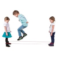 Hink, stap, sprong! Springelastieken geven plezier voor iedereen, vooral als ze zo kleurrijk zijn als deze.