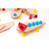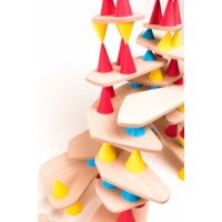 Deze stapelbare kegels zijn geschikt voor het ontwikkelen van concentratie en motoriek van kinderen. Allerlei bouwwerken kunnen gemaakt worden met de stapelbare kegels en planken. Door te spelen met de kegels en plankjes ontdekken kinderen om balans te houden, het ontwikkelen van motorische vaardigheden. De siliconen kegels worden geleverd in 3 maten: klein, medium en groot. Hierdoor moeten kinderen beslissingen maken over welke kegel ze waar plaatsen om een stabiel bouwwerk te maken.