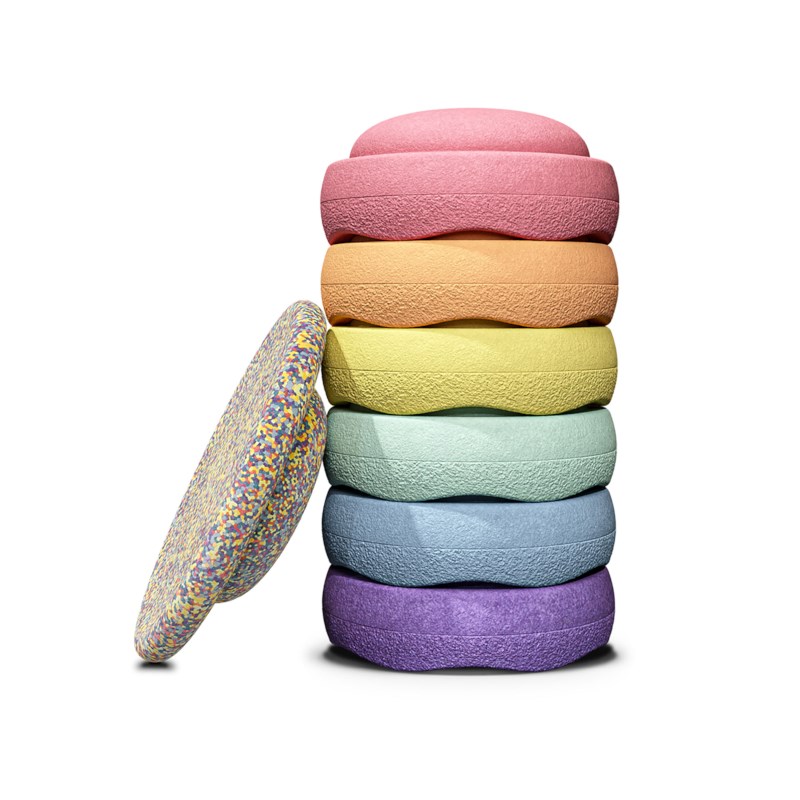 Stapelstenen | Stapelstein met board| Regenboog pastel | Set à 7 stuks