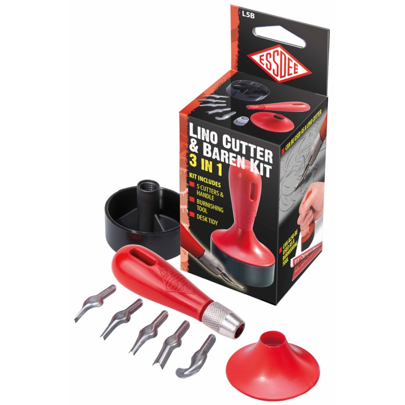 Complete set met materiaal voor linosnijden en eigen stempels snijden.