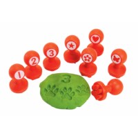 Stempels met een stevige plastic handgreep. Geschikt om afdrukken in klei en deeg te maken.