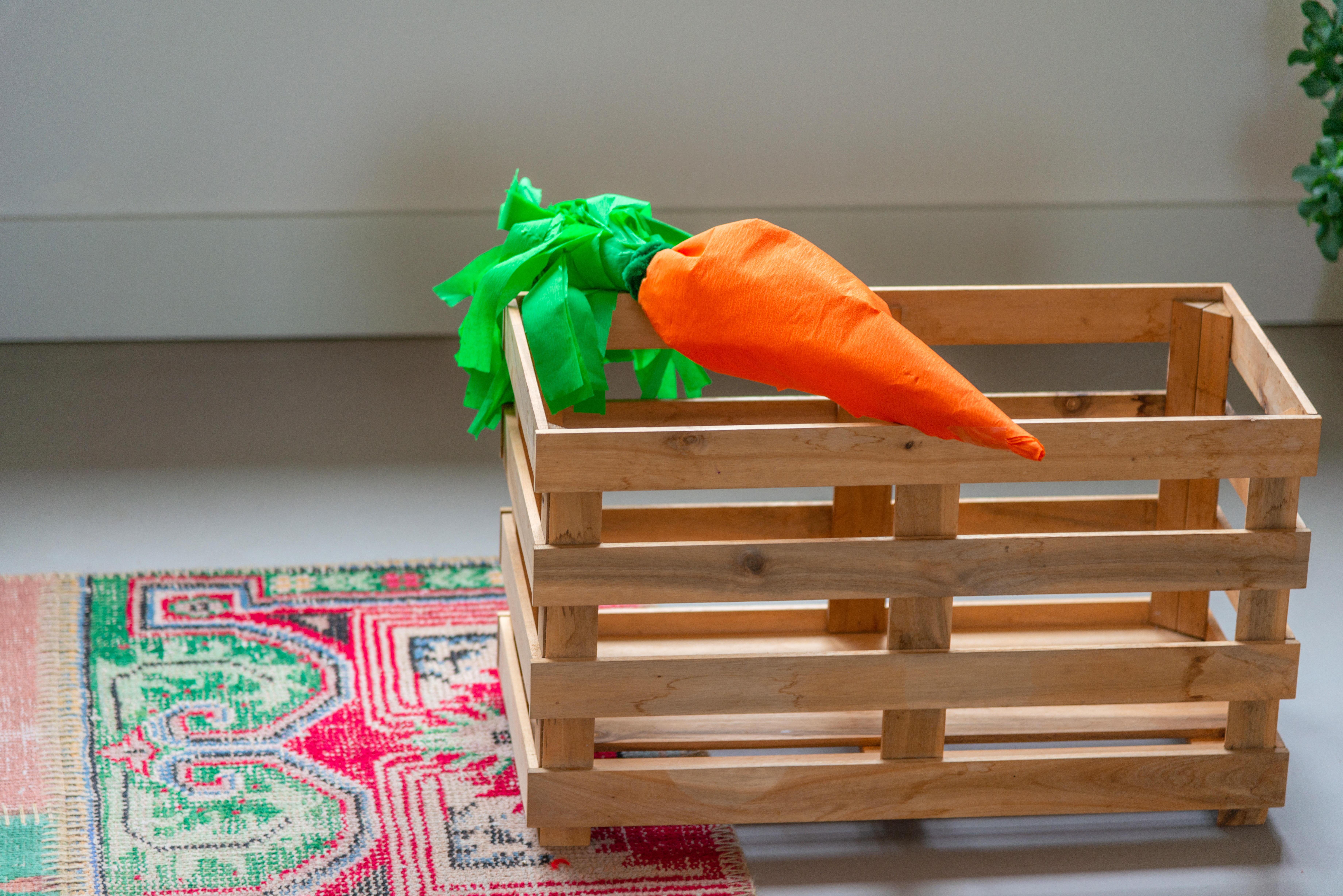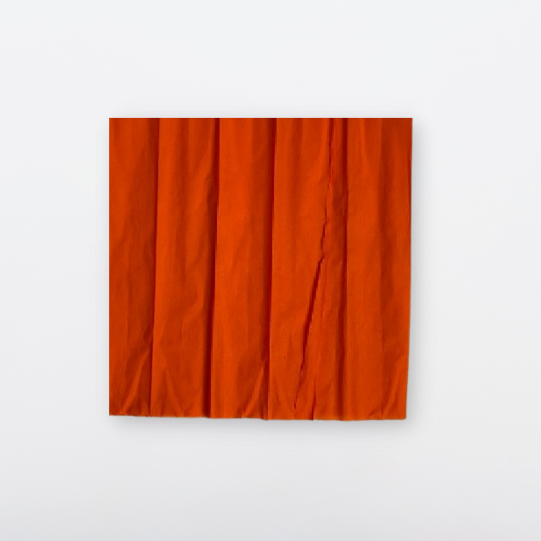 Gebruik de volledige rol crepepapier. Vouw een vierkant van het oranje crêpepapier.
