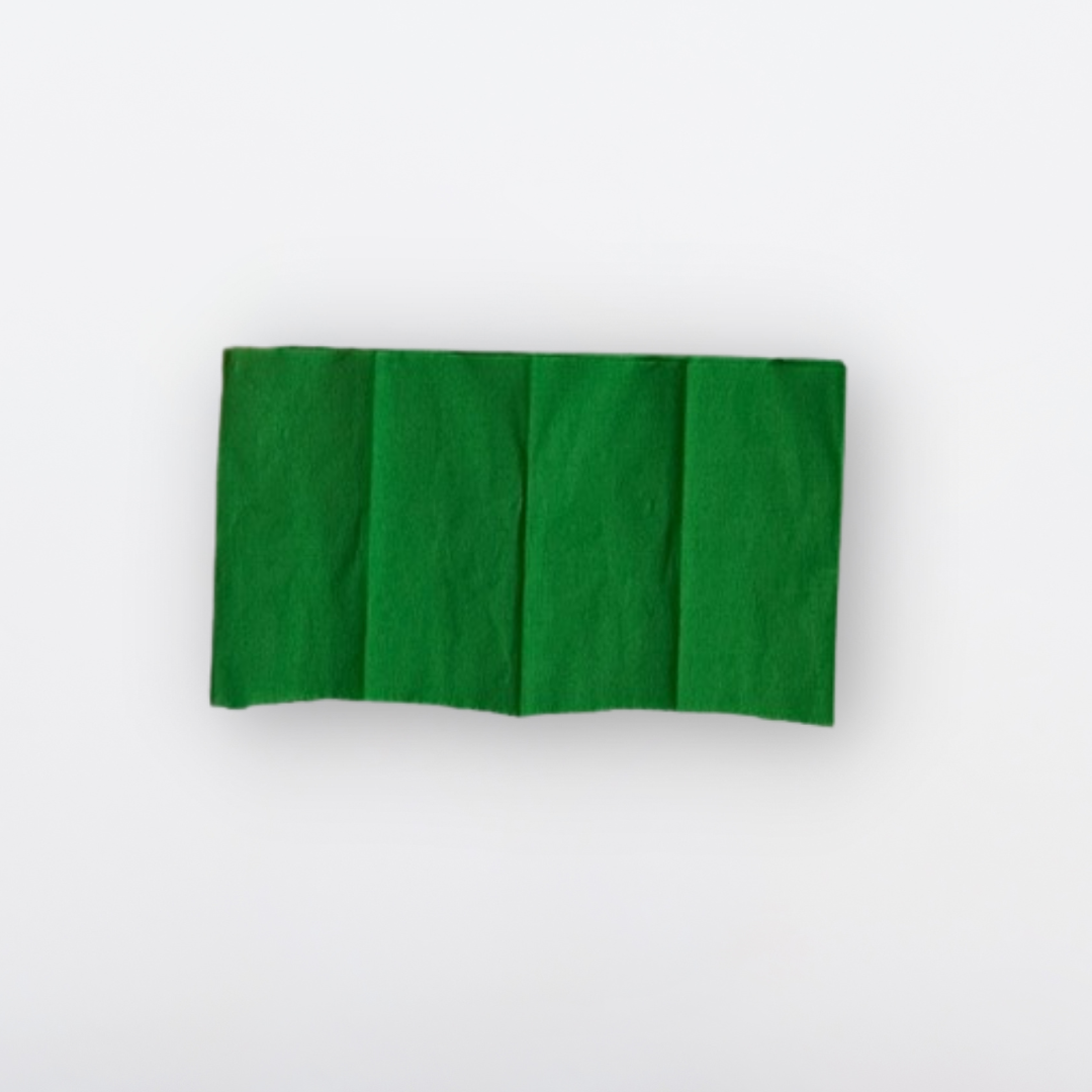 Knip de strook crepepapier door de helft. Vouw een rechthoek van groen crêpepapier.