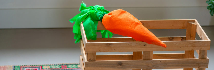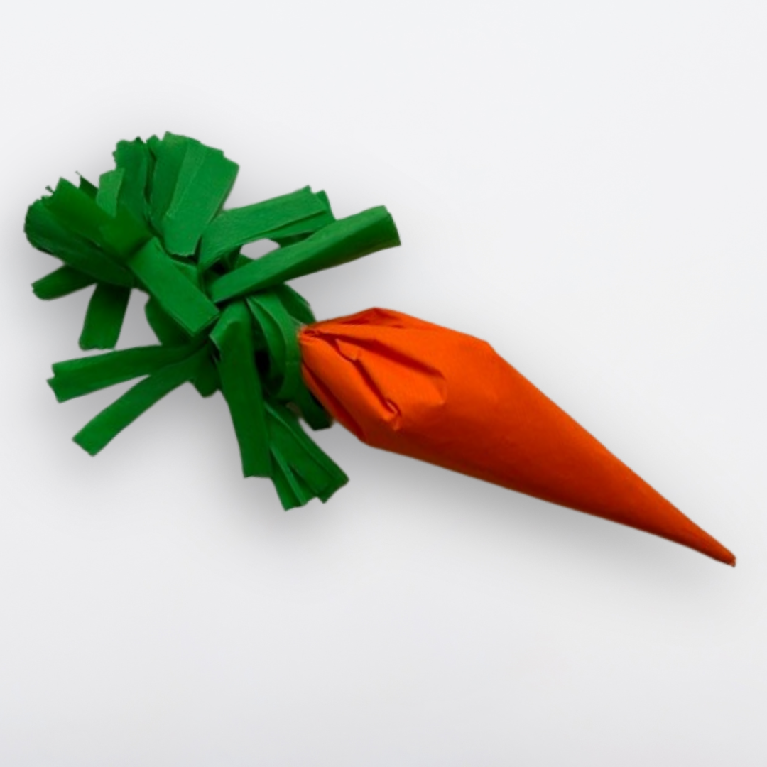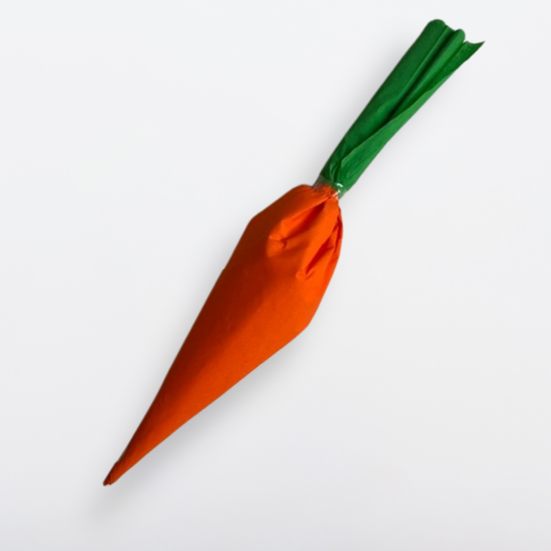 Draai het crêpepapier vanuit de punt in de vorm van een hoorntje en stop je cadeaus in de hoorn.