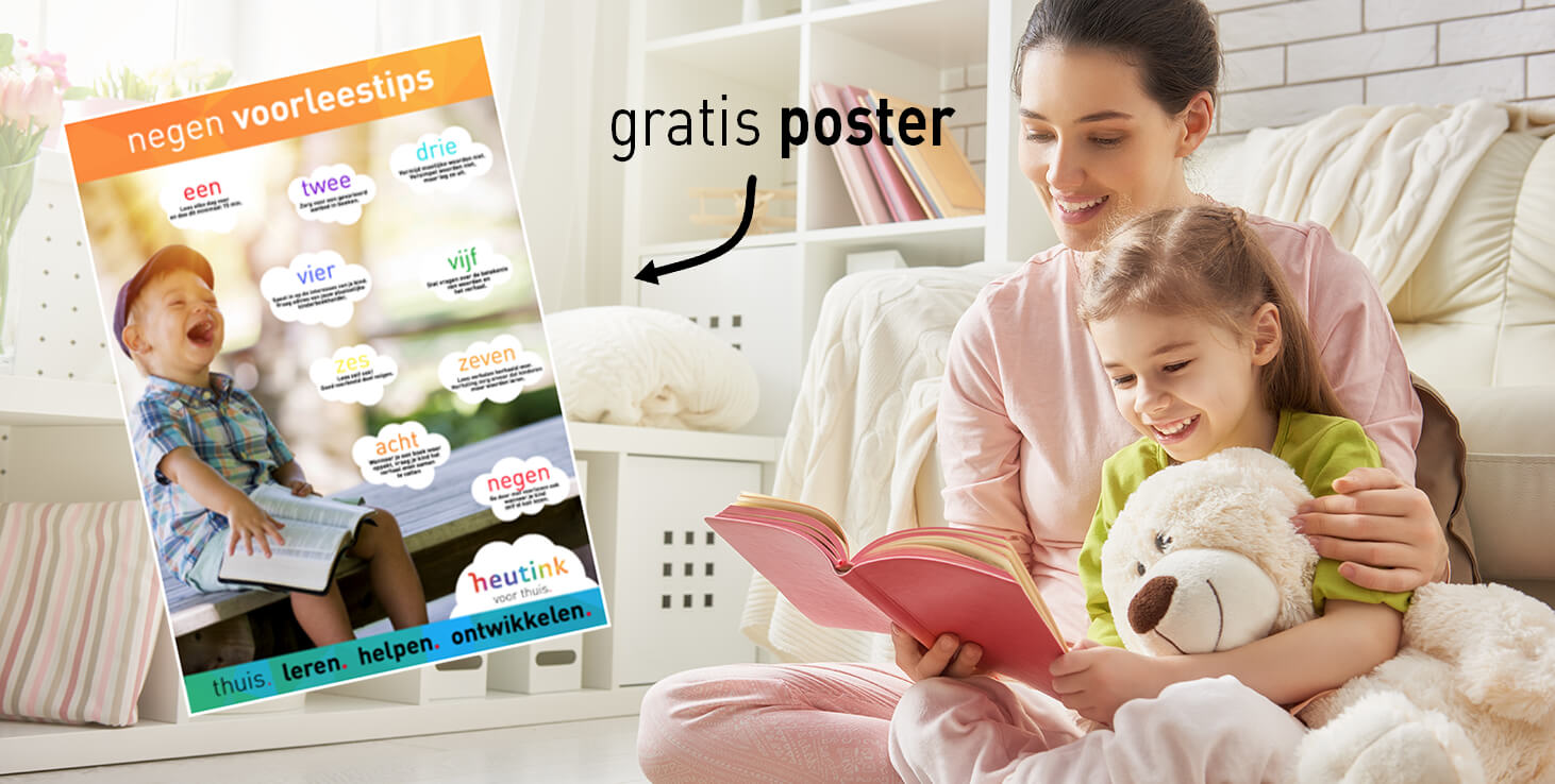 Voorlezen is leuk (en belangrijk!) voor kinderen van alle leeftijden. Speciaal voor Heutink voor Thuis maakten meester Sander en juf Sanne een handige poster met tips voor het voorlezen, die je gratis kunt downloaden. Ook maakten zij een video met tips die je hier kunt bekijken.