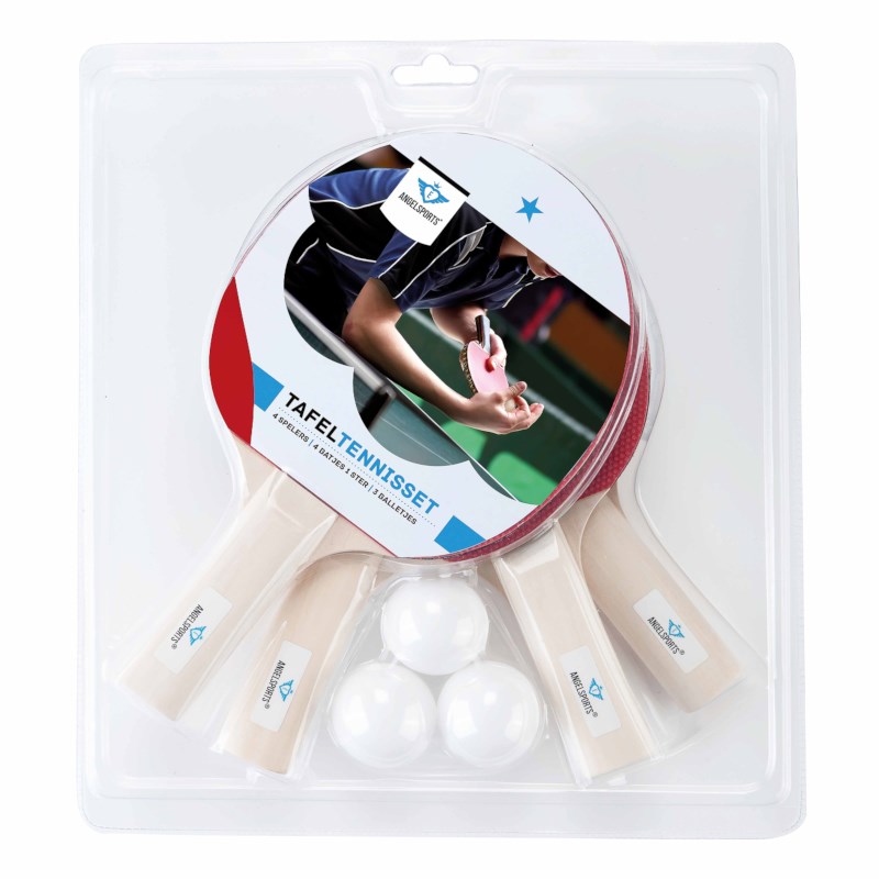 Tafeltennisbatjes | 1 ster | Inclusief ballen | Set à 4 stuks