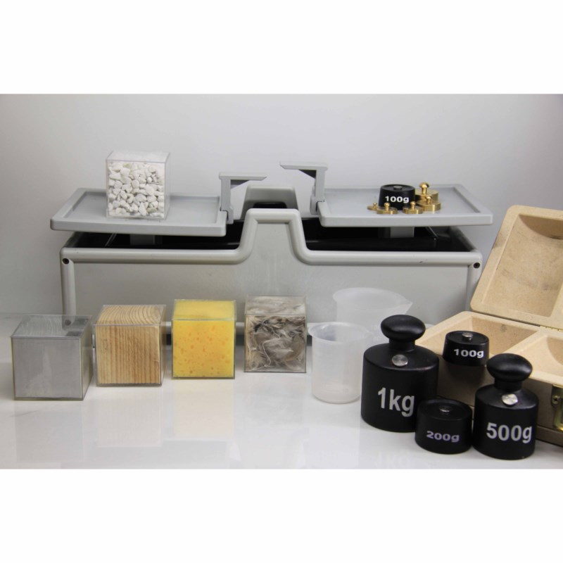 - set van 10 kubussen met verschillende materialen en gewichten