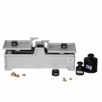 Tafelweegschaal, inclusief gewichten. De platen waarop de gewichten gezet dienen te worden, hebben een formaat van 13 x 13 cm. De set bevat verschillende gewichten met een totaal gewicht van 2 kg. De tafelweegschaal weegt 2 kg en is gemaakt van hard kunststof.