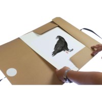 Opbergmap om tekeningen op A4 formaat in op te bergen. De map heeft 3 kleppen. Door middel van een lint kan de map gesloten worden.