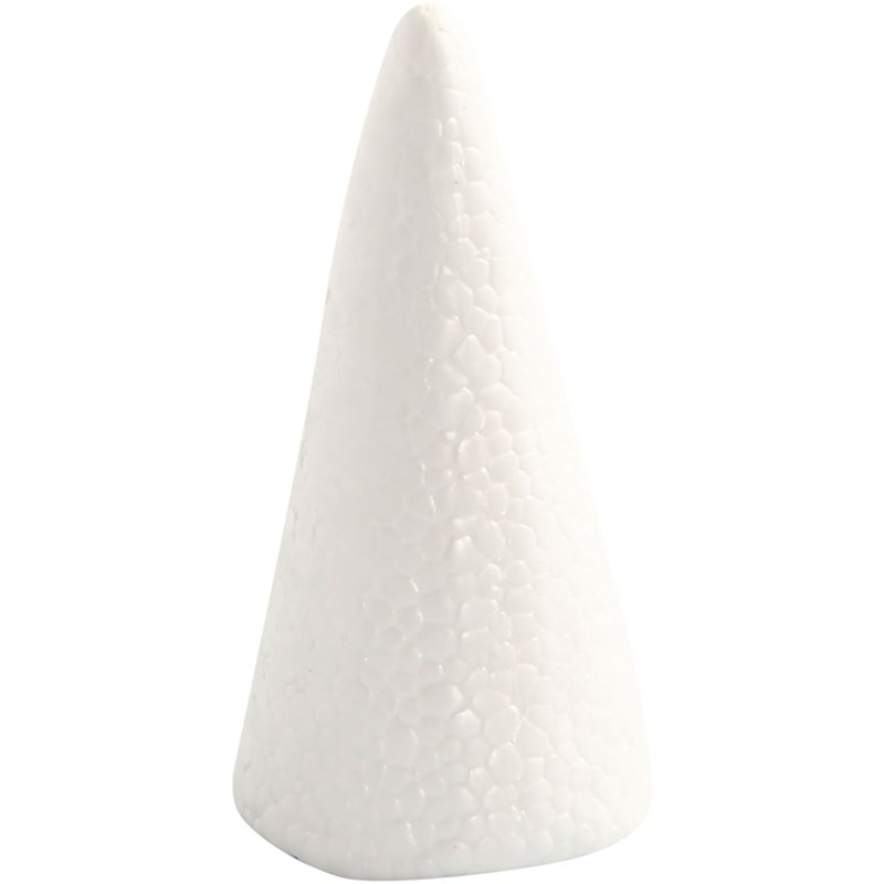Kegel. Formaat: 11 cm. Tempexfiguren zijn makkelijk te bewerken: schilderen, versieren met pailletten, bekleden met servetten, touw, stof enz. Set à 5 stuks.