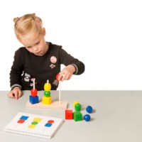 Sorteer de kralen op grootte en kleur door ze op de juiste plek in de staander te plaatsen. Ontwikkel de ruimtelijke oriëntatie en de fijne motoriek.