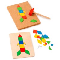 - inhoud: kurkplaat, 6 dubbelzijdige opdrachtkaarten, hamer, 108 figuren, 108 spijkers