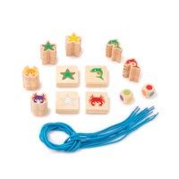 Lukt het jou om de juiste zeedieren te rijgen? Dit spel kan op verschillende manieren worden gespeeld. Gooi de 2 dobbelstenen en rijg een die dat dezelfde 2 kleuren heeft. Of leg een aantal beeldkaartjes achter elkaar en rijg deze na. Je kan natuurlijk ook een prachtige ketting maken van verschillende zeedieren.