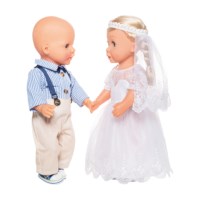 Een setje kleding voor poppen van (±) 40 cm lengte. De set bestaat uit een trouwjurk en sluier. Deze poppenkleding is geschikt voor kinderen vanaf 3 jaar.