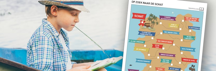 Vakantie, dat is tijd om nieuwe avonturen te beleven. Maar om te zorgen dat het leesniveau van je kind niet achteruit gaat, is het ook belangrijk om elke dag 15 minuten te lezen. Deze schatkaart stimuleert jouw kind om al lezend de schat te zoeken.