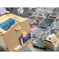 - Zet de tablet in de ‘Verderkijkdoos’. Dit is nu je achtergrond en een van je lichtbronnen.