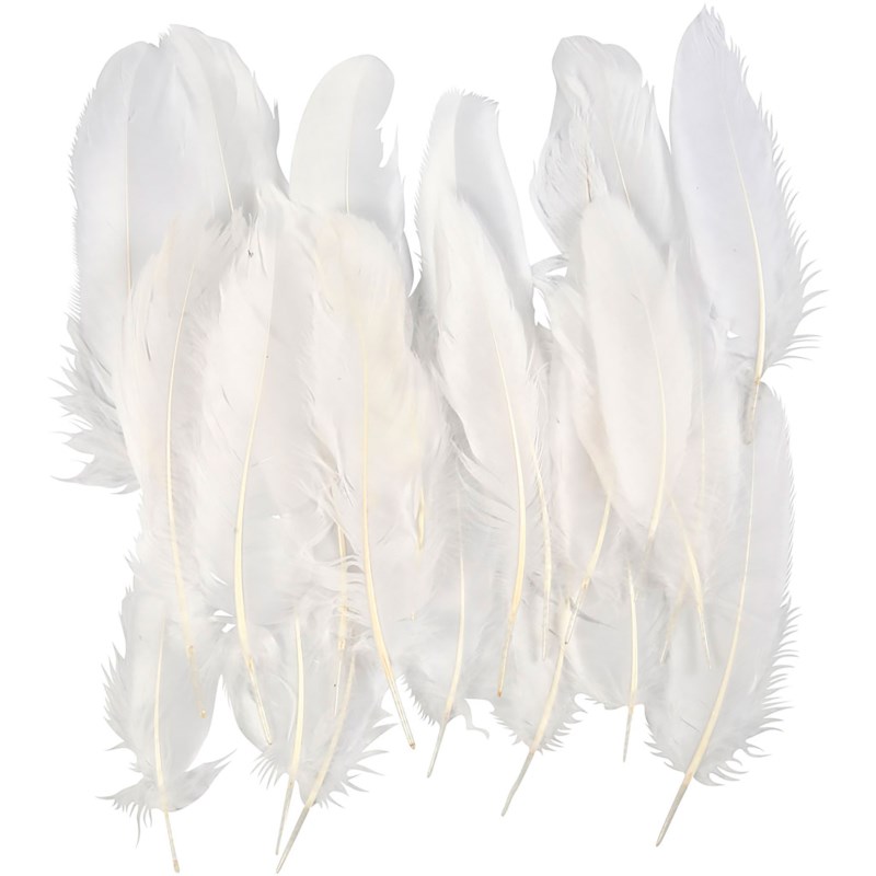 Mooi kwaliteit witte ganzenveren. 70 stuks, wit.