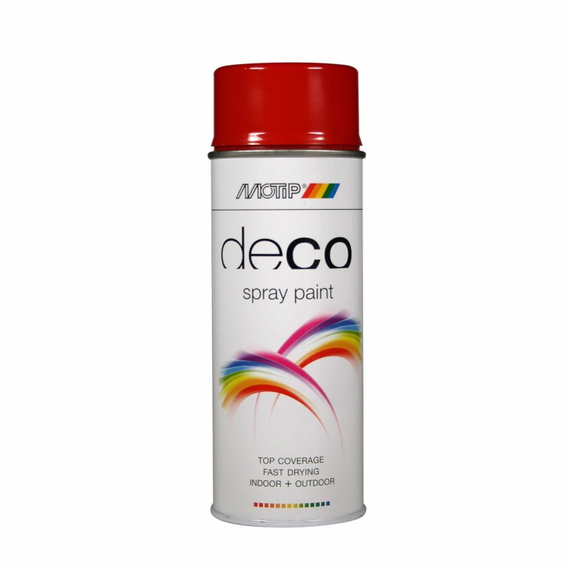 Hoogglans vuurrood. Voor intern en extern gebruik. Droogt binnen enkele minuten. Spuitbus à 400 ml.