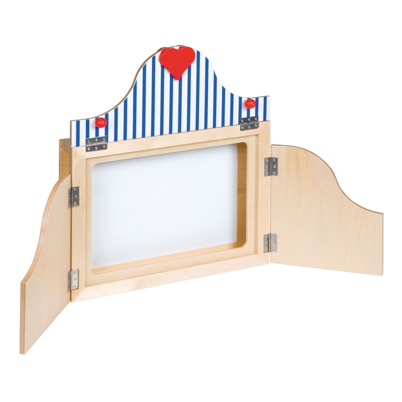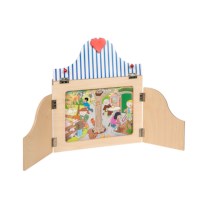Het Verteltheater brengt verhalen tot leven. Door platen te schuiven of op het whiteboard te schrijven, ontstaat een levendige vertelling die taalontwikkeling en expressief taalgebruik stimuleert. Het theater biedt ook ruimte voor creatief spel. Kinderen gebruiken het als schimmenspel, poppenkast of decor voor eigen verhalen, wat hun fantasie prikkelt en taalvaardigheid versterkt.