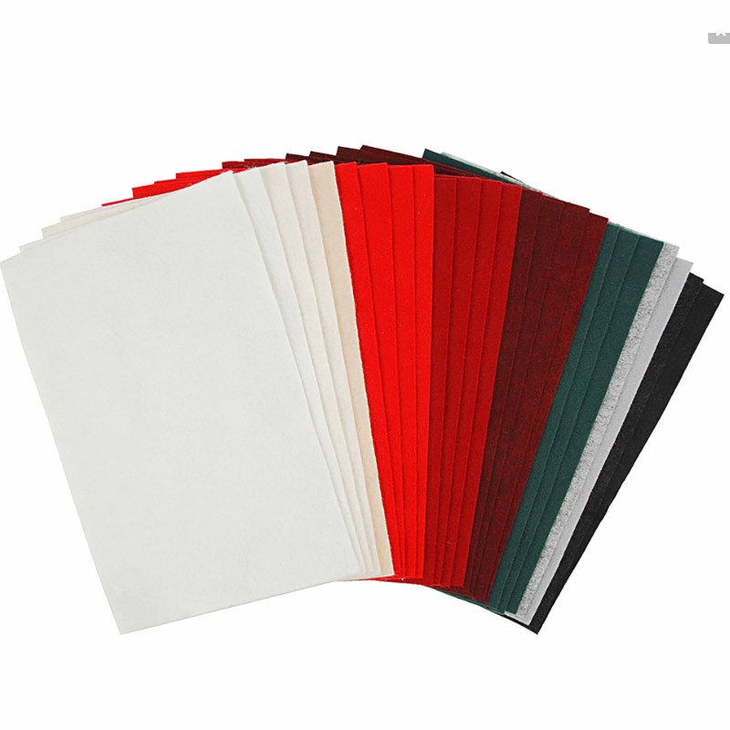 U krijgt geleverd: 1 pakket met 24 vel vilt in de kleuren wit 3 tinten, rood 3 tinten, groen, grijs 2 tinten en zwart