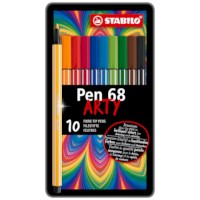 De STABILO Pen 68 is een viltstift geschikt voor hobby en professional. Blik met 10 heldere kleuren.