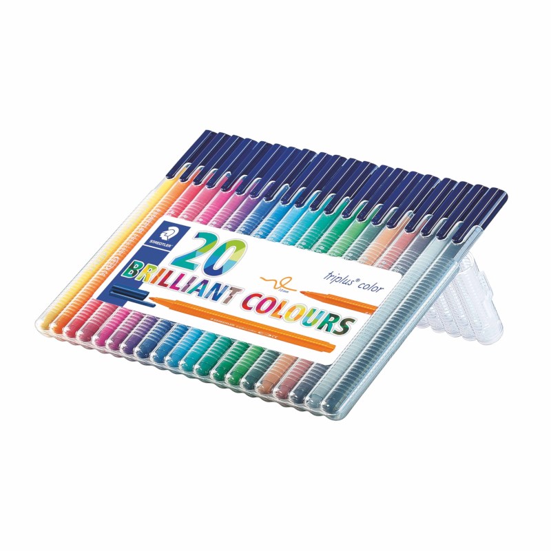 Set met 20 briljante kleuren Staedtler triplus stiften in hard kunststof bewaarbox.