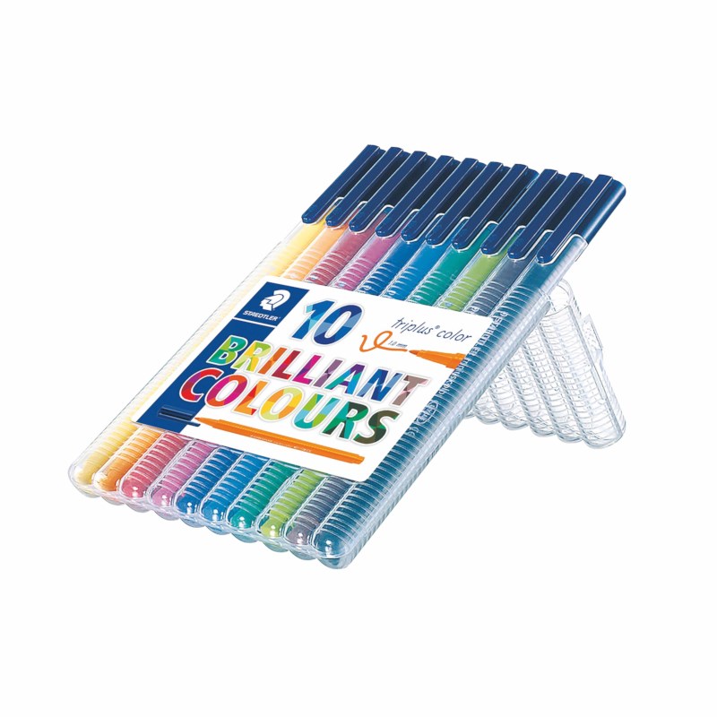 Set met 10 brilliante kleuren Staedtler triplus stiften met puntdikte 1.0 mm.