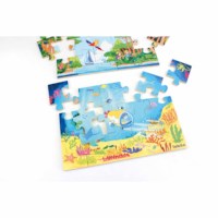 Deze vloerpuzzel ontdek de zee, aarde, ruimte, bestaat uit 3 losse puzzels die aan elkaar gelegd kunnen worden. Formaat aan elkaar: 29,8 x 63 cm (l x b).