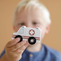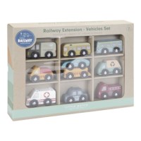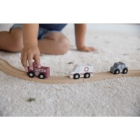 Deze houten bedrijfs en – hulpverleningsvoertuigen zijn ontworpen om samen te gebruiken met de houten treinset. De voertuigen zijn geschikt om op de rails te rijden en zo hulp te bieden waar ze nodig zijn in de stad.